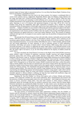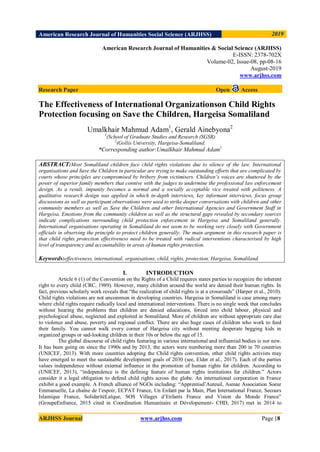 This document summarizes a research paper that examines the effectiveness of international organizations, focusing on Save the Children, in protecting child rights in Hargeisa, Somaliland. It conducted interviews and focus groups with children, community members, government officials, and staff from Save the Children and other organizations. The research found complications in child protection enforcement due to gaps in the legal system and issues of impunity, corruption, and clan influence. It concluded that child rights protection needs radical interventions with high transparency and accountability in human rights.