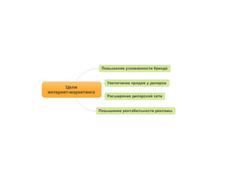 Документ представляет системный подход к развитию B2B-бизнеса в интернете, описывая стратегии интернет-маркетинга, сегментацию целевой аудитории и анализ конкурентов. В нем изложены методы повышения эффективности рекламных кампаний и создания успешного сайта для достижения бизнес-целей. Также обсуждаются важные показатели, такие как конверсии и взаимодействия пользователей с сайтом.