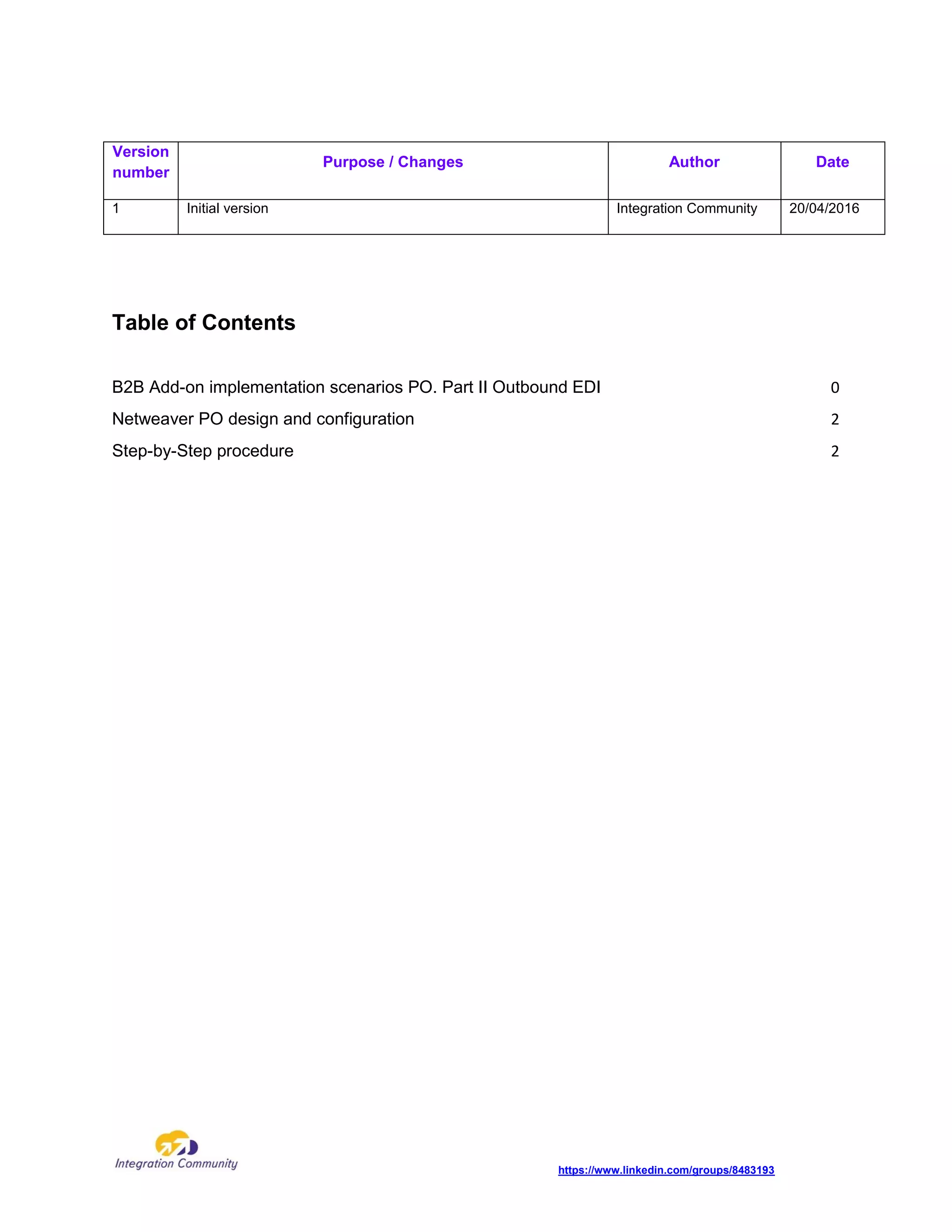 This document provides steps to configure outbound EDI scenarios using SAP NetWeaver Process Orchestration and the B2B add-on. It outlines setting up parties, channels, and an integration flow to send EDI documents from SAP to a third party via AS2. The steps include configuring a sender channel to replicate the IDoc sender channel under a party, creating an AS2 MDN sender channel, and an AS2 receiver channel. An integration flow is then created using standard SAP mappings to send invoices from SAP to a VAN provider. Testing is done by generating documents from SAP and verifying receipt in the Mendelson tool.