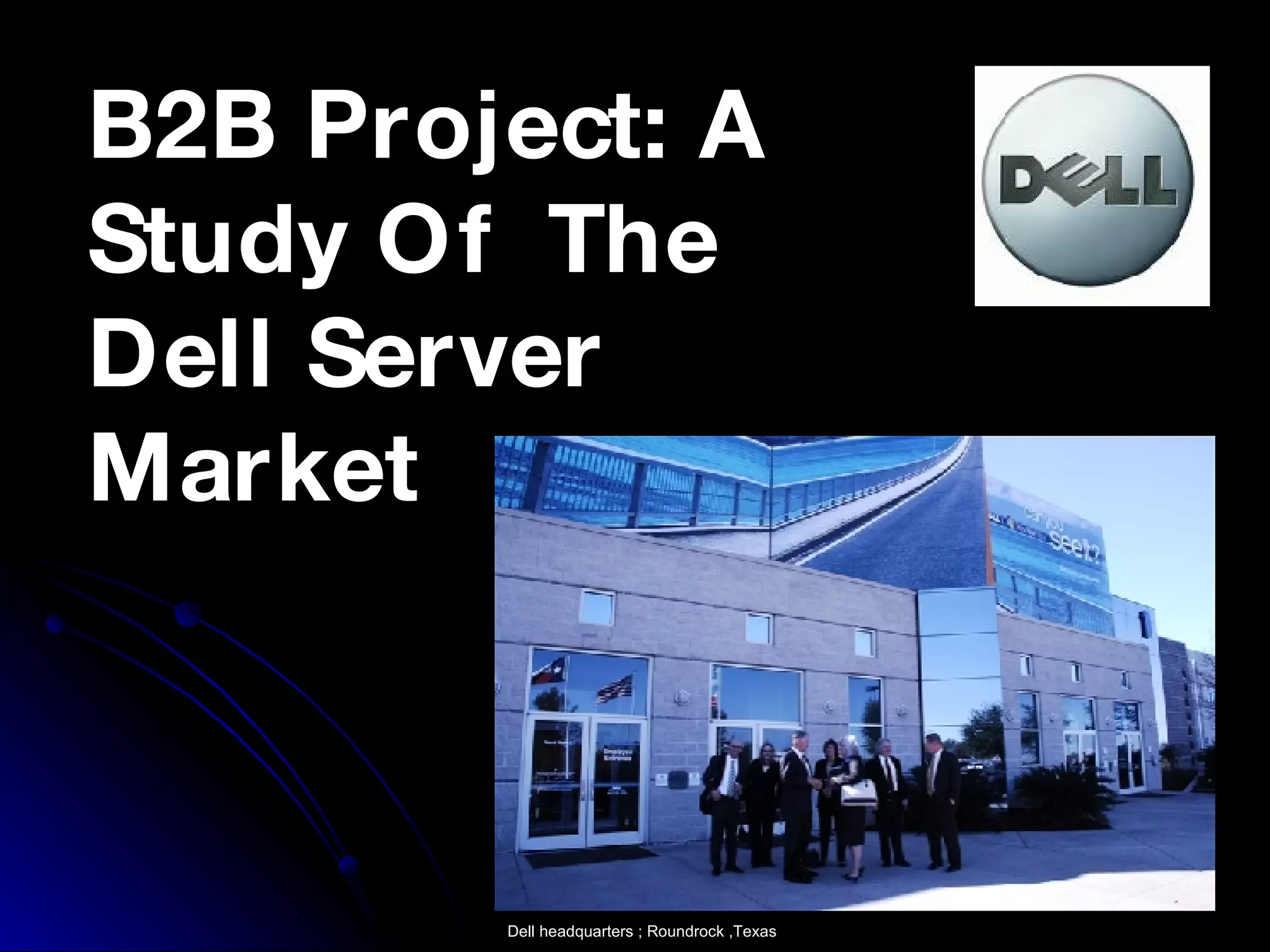 Dell is a leading provider of servers in the B2B market, headquartered in Round Rock, Texas. It pioneers the direct sales model and was the first company to record $1 million in online sales. Dell's PowerEdge servers are designed for medium to large businesses and offer affordable performance, reliability, and upgradability. While Dell faces increased competition from IBM and HP, it utilizes a low-cost leadership strategy and focuses on meeting customers' specific needs through mass customization and a variety of marketing strategies to continue growing its server business. The document recommends that Dell enhance customer support, offer data backup capabilities, and increase advertising and showrooms to further engage corporate clients.