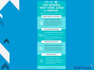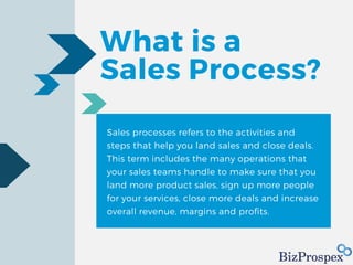 The document outlines the key steps in an effective B2B sales process. It discusses 6 steps: 1) selecting the right prospects through segmentation and ideal customer profiles, 2) initial contact through meetings, 3) implementing the right sales strategy, 4) performing well in face-to-face meetings, 5) determining the next step, and 6) closing deals. It emphasizes the importance of clean, accurate customer data to enhance the sales process.