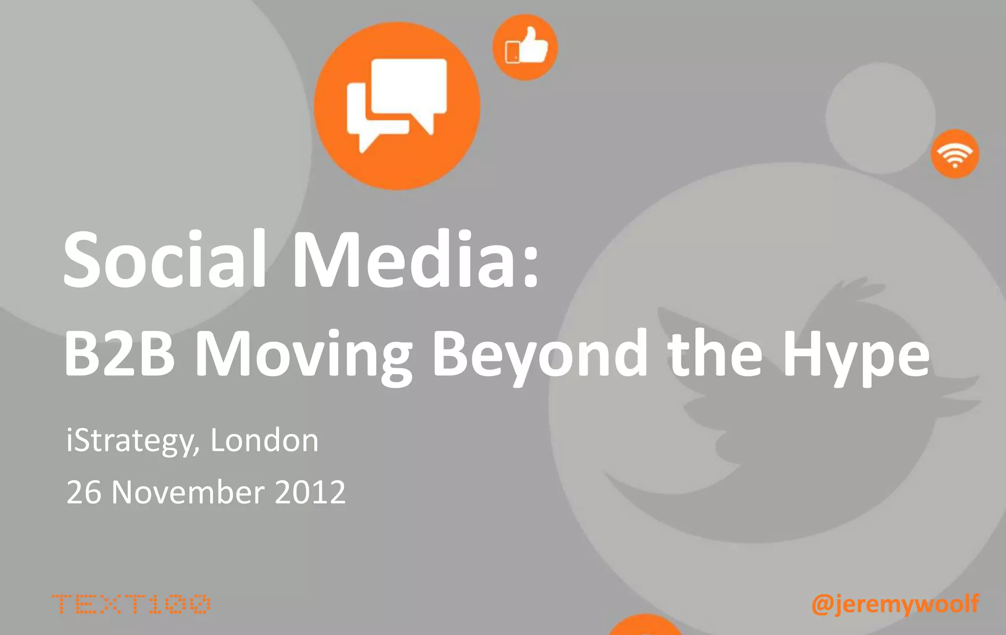 The document discusses the evolution of B2B marketing through social media, emphasizing the need for businesses to engage directly with their audience to build trust and gather insights. It highlights the importance of understanding buyer personas and their journey, as well as the content that drives purchasing decisions. Key recommendations include creating relevant content tailored to various stakeholders involved in the buying process and simplifying the overall purchasing experience.