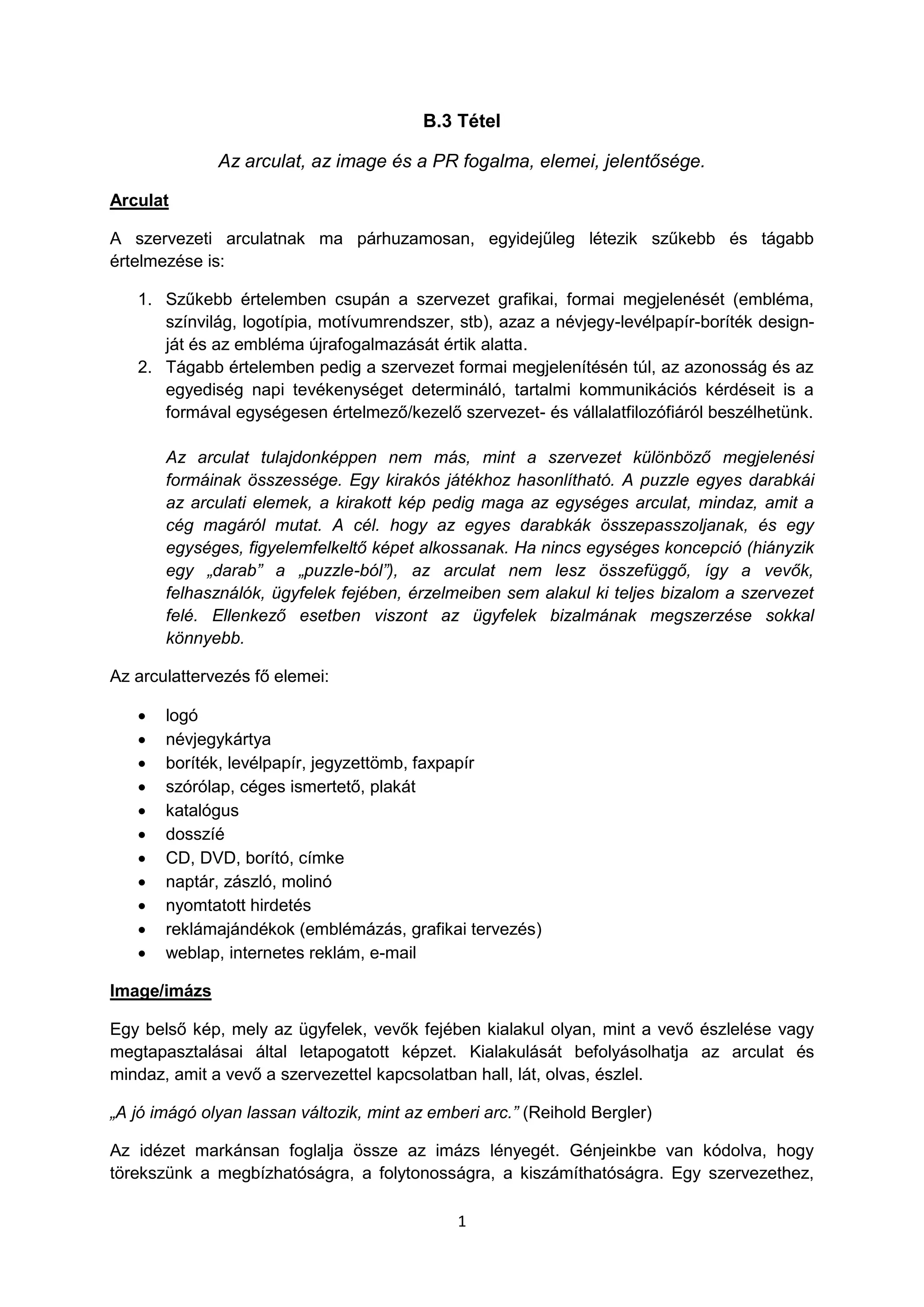 Az arculat,az image és a PR fogalma, elemei, jelentősége.