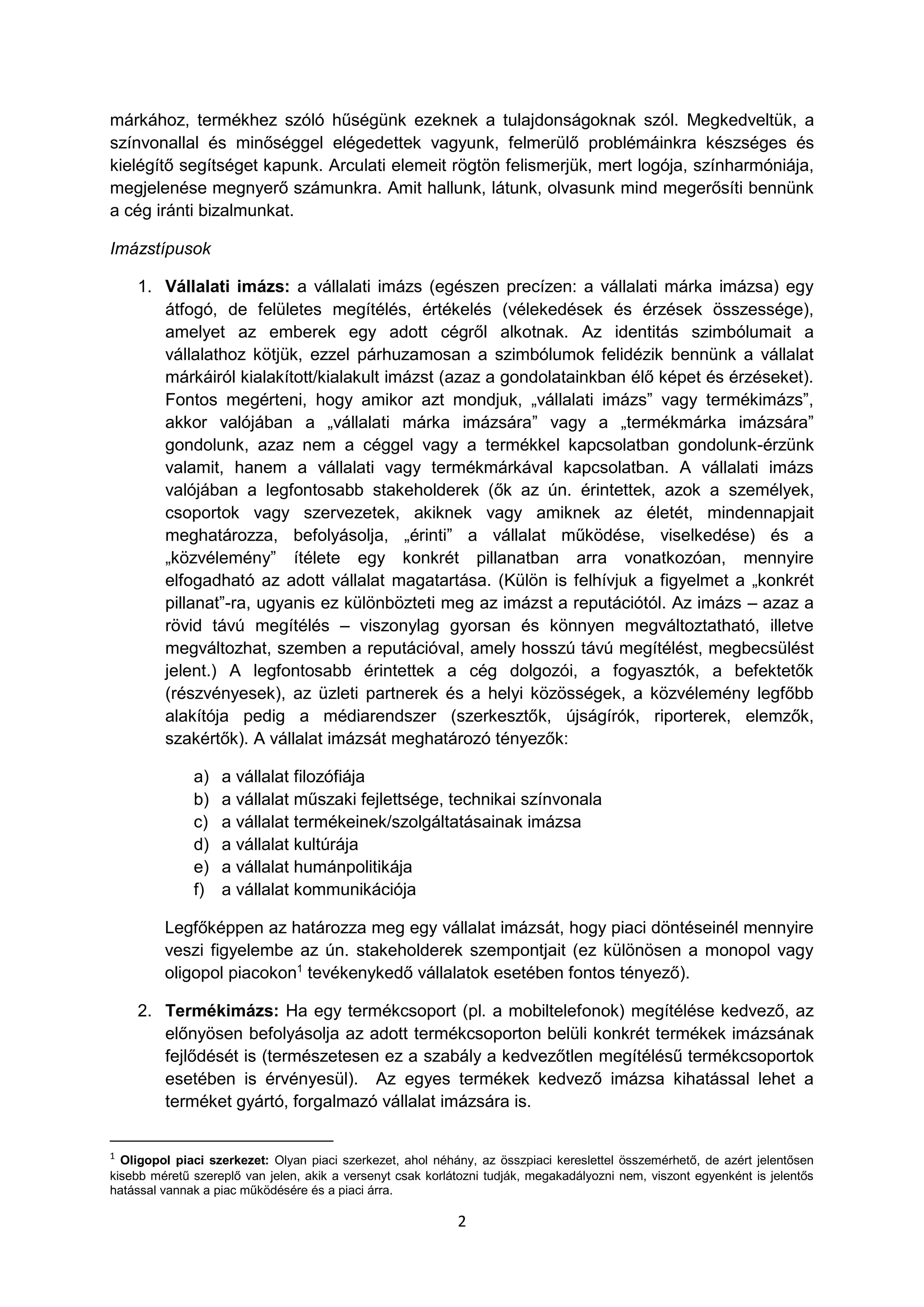 1. Vállalati imázs: a vállalati imázs (egészen precízen: a vállalati márka imázsa) egy