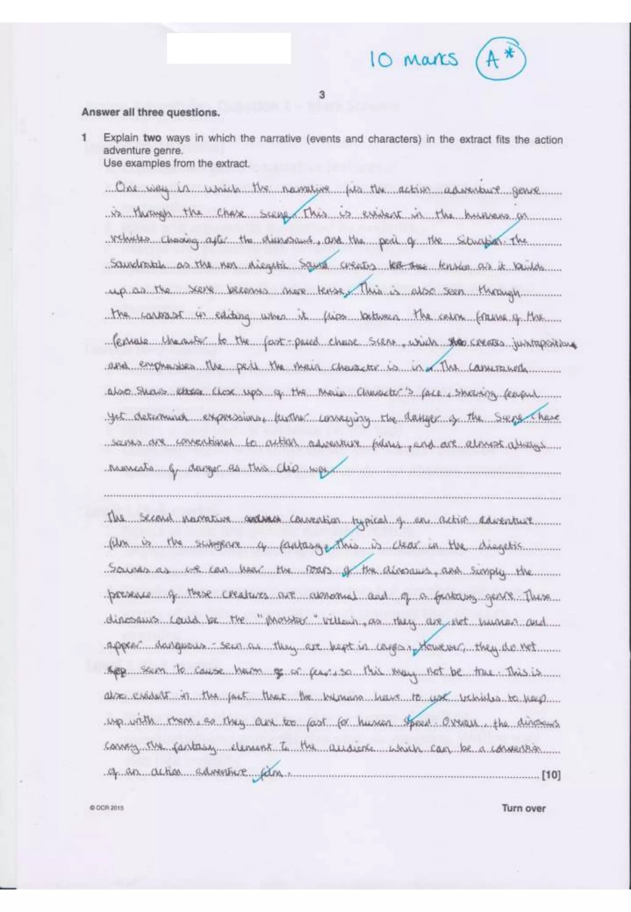 B322 Action Adventure - Question 1 Exemplar Responses