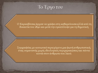 -Το έργο του ανανεώνει την ηθογραφική πεζογραφία και
