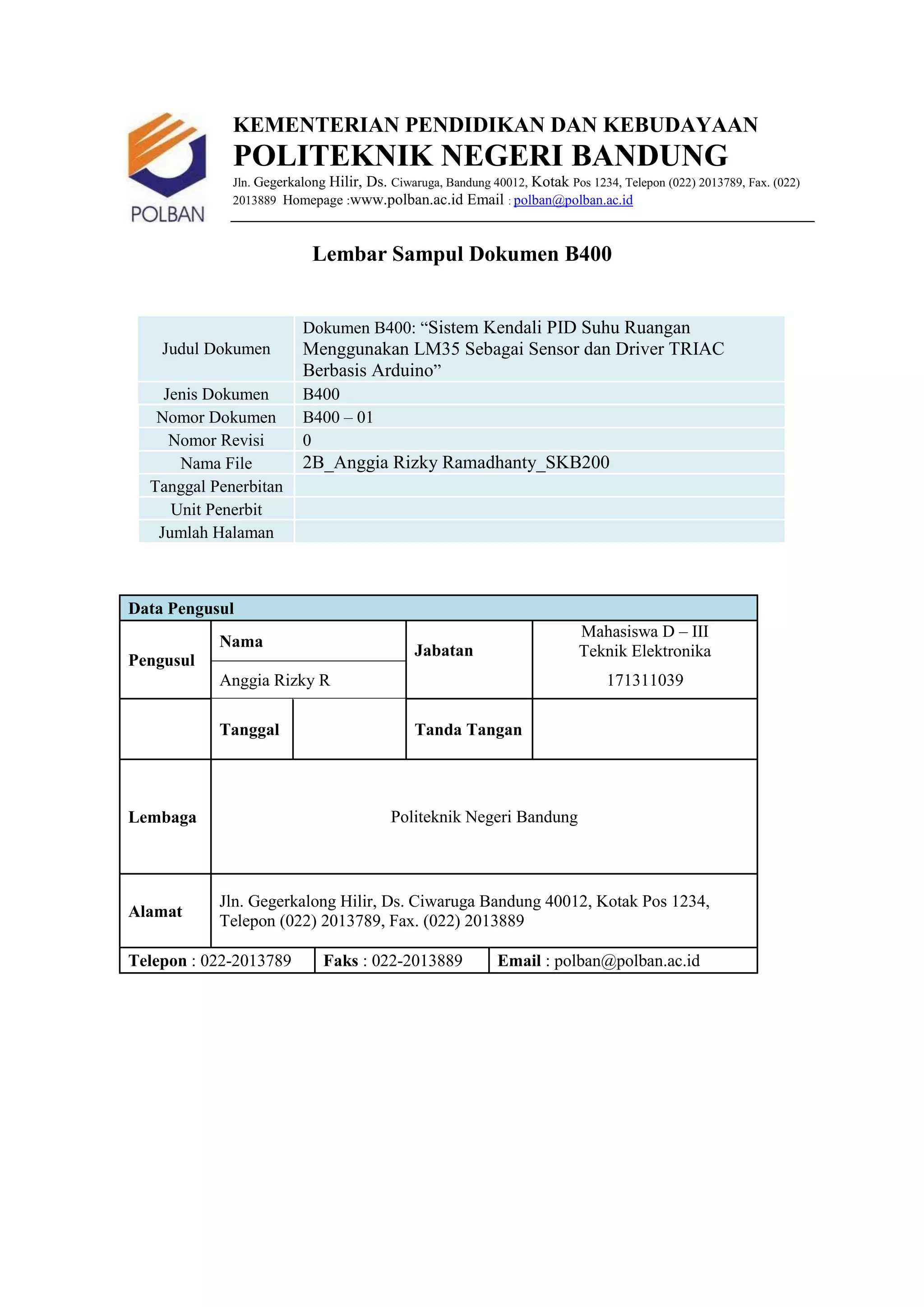 1. Dokumen ini berisi proposal proyek sistem kendali suhu ruangan menggunakan sensor LM35 dan driver TRIAC berbasis Arduino.