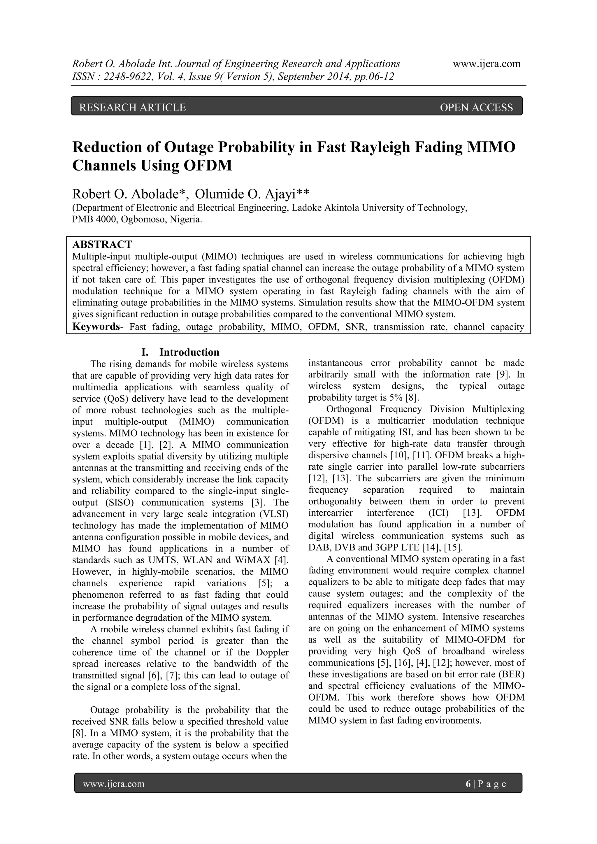 1) The document presents research on reducing outage probabilities in MIMO systems operating in fast fading channels using OFDM modulation.