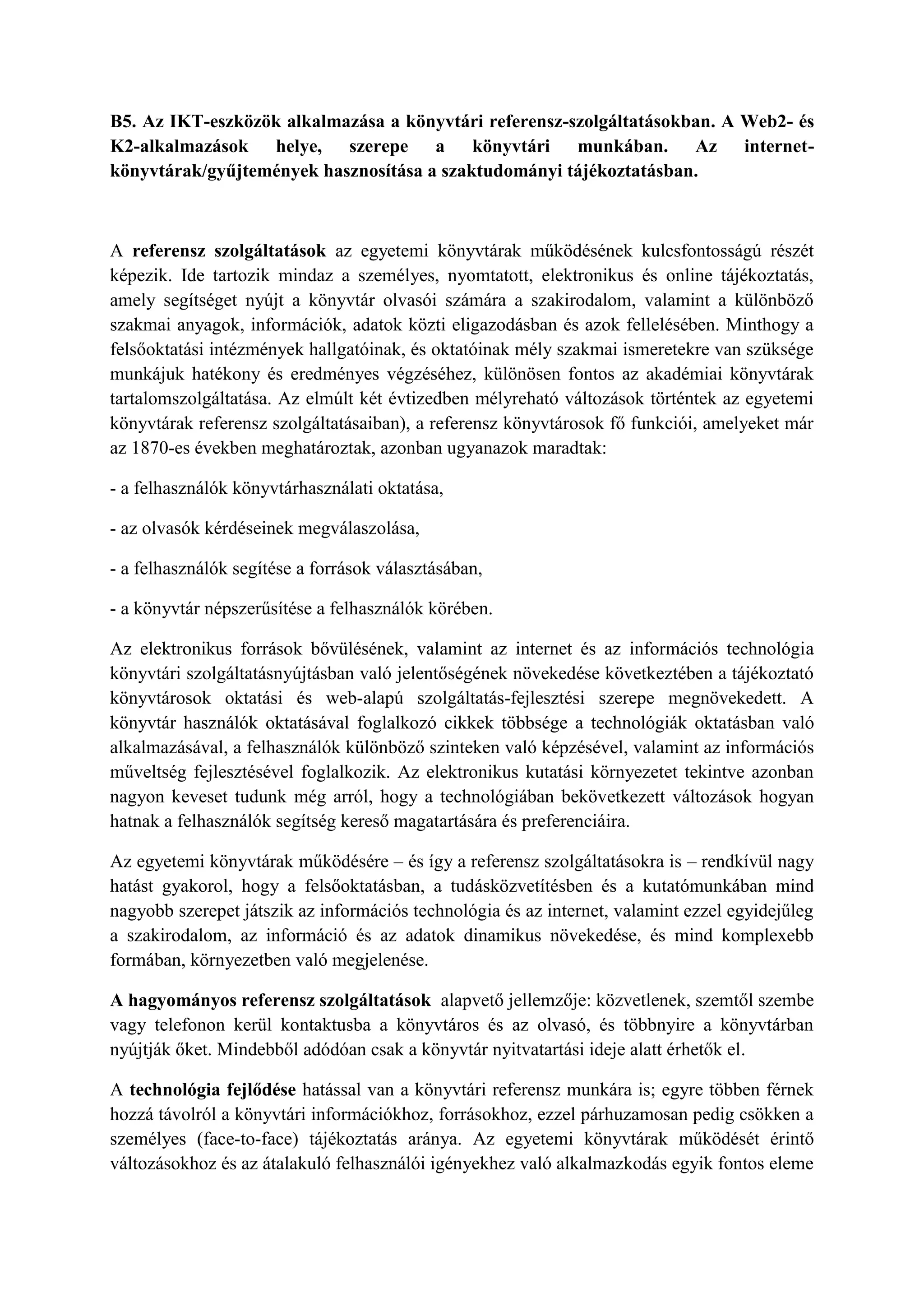 B5. Az IKT-eszközökalkalmazása a könyvtári referensz-szolgáltatásokban. A Web2- és