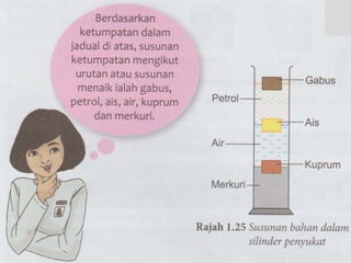 Bab 1 memperkenalkan penyiasatan saintifik, termasuk definisi sains, alat makmal, dan kepentingan unit piawai dalam pengukuran. Ia membahas pelbagai cabang sains serta kemahiran dan peraturan keselamatan yang perlu dipatuhi dalam makmal. Di akhir bab, tumpuan diberikan kepada langkah-langkah dalam penyiasatan saintifik dan nilai-nilai murni yang perlu dipraktikkan oleh seorang saintis.