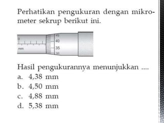 Bab 1 membahas tentang objek ilmu pengetahuan alam dan pengamatannya. Terdapat beberapa tahapan dalam penyelidikan ilmiah yaitu pengamatan, membuat inferensi, dan mengomunikasikan. Bab ini juga menjelaskan tentang objek ilmu pengetahuan alam, besaran fisika, besaran pokok dan turunan.
