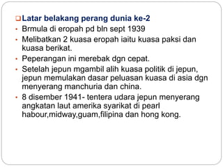 Dokumen ini membahas perjuangan mencapai kemerdekaan di Tanah Melayu dari 1941 hingga 1963, termasuk latar belakang Perang Dunia II, pendudukan Jepun, anti-penyerahan, dan pembentukan Malaysia. Ia mencatat perlawanan penduduk tempatan terhadap Jepun, penubuhan Persekutuan Tanah Melayu, dan proses menuju kemerdekaan melalui rundingan serta pengisytiharan kemerdekaan 31 Ogos 1957. Juga, dokumen ini menyentuh faktor-faktor yang mendorong pembentukan Malaysia dan reaksi dari dalam dan luar negara.