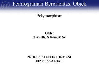 • Polymorphism berasaldari bhs yunani yang