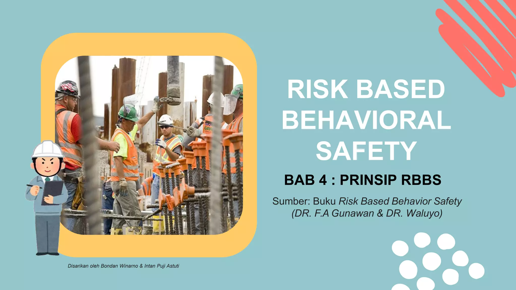 Risk Based Behavioral Safety (RBBS) adalah proses untuk mengamati dan membangun perilaku aman di tempat kerja melalui penggerak perilaku, penguatan positif, dan disiplin. Model ABC menjelaskan hubungan antara antecedents, behavior, dan consequences dalam mempengaruhi tindakan aman. Penerapan RBBS melibatkan pengamatan, analisis, dan evaluasi perilaku berbahaya untuk mencapai tujuan operasional yang unggul dan bebas dari insiden.
