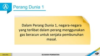 Perang Dunia I dipicu oleh nasionalisme etnis dan aliansi militer, menghasilkan penggunaan senjata masal dan mobilisasi luas setelah pembunuhan Pangeran Franz Ferdinand. Setelah berakhirnya perang pada 1918, Eropa mengalami kemunduran, runtuhnya kekaisaran, dan munculnya ideologi baru seperti komunisme dan fasisme. Perang Dunia II yang mengikuti, dipicu oleh ketidakpuasan atas perjanjian pasca Perang Dunia I dan ketidakstabilan ekonomi, akhirnya melibatkan invasi Jepang dan penggunaan bom atom oleh AS.