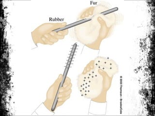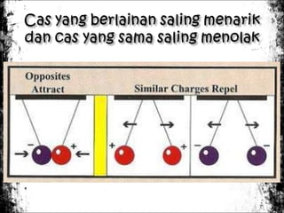 1) Elektrik statik terhasil apabila dua bahan berlainan digosokkan bersama-sama, menyebabkan pemindahan elektron antara kedua-dua bahan.