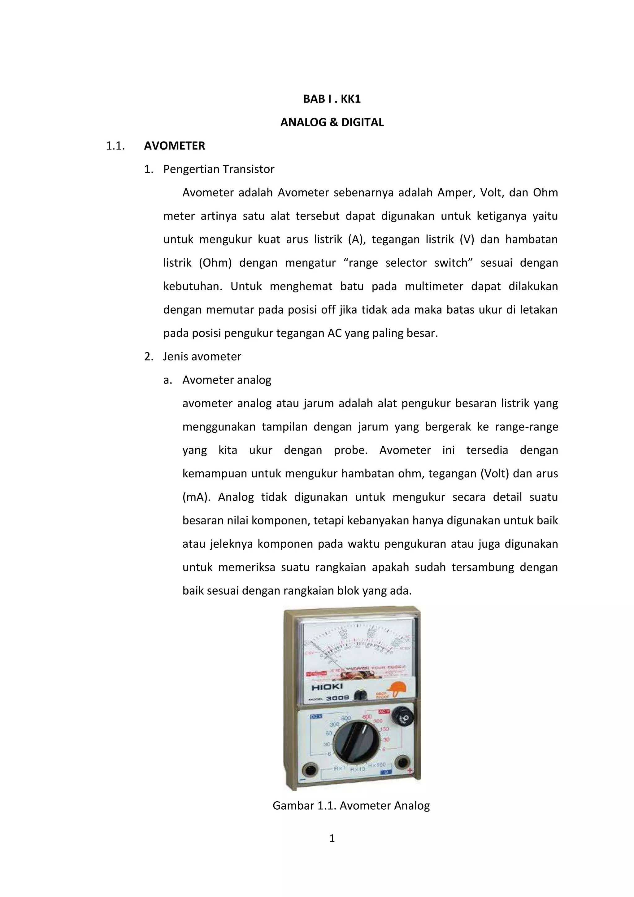 1. Dokumen membahas tentang avometer, transistor, resistor, dan komponen terkait.
