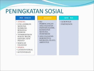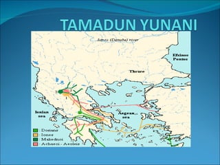 The document discusses the ancient Olympics held in Olympia, Greece every four years. Only men were allowed to participate and compete in foot races, wrestling, boxing, and chariot races. The Olympics honored Zeus and were expanded over time to include more events over five days, with sacrifices and prayers made by athletes. Winners received an olive wreath, while owners of winning horses in races were awarded.