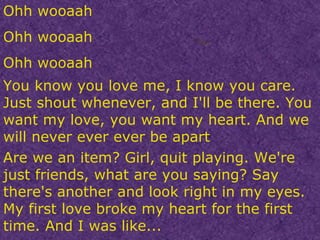 The song is about a man reminiscing on his first love from when he was 13 years old. He expresses how much he cared for her and that she used to be everything to him. Now he is heartbroken because they have broken up and he can't believe that she won't always be his. He repeats the refrain "Baby, baby, baby oooh" to express his sadness over losing his first love.