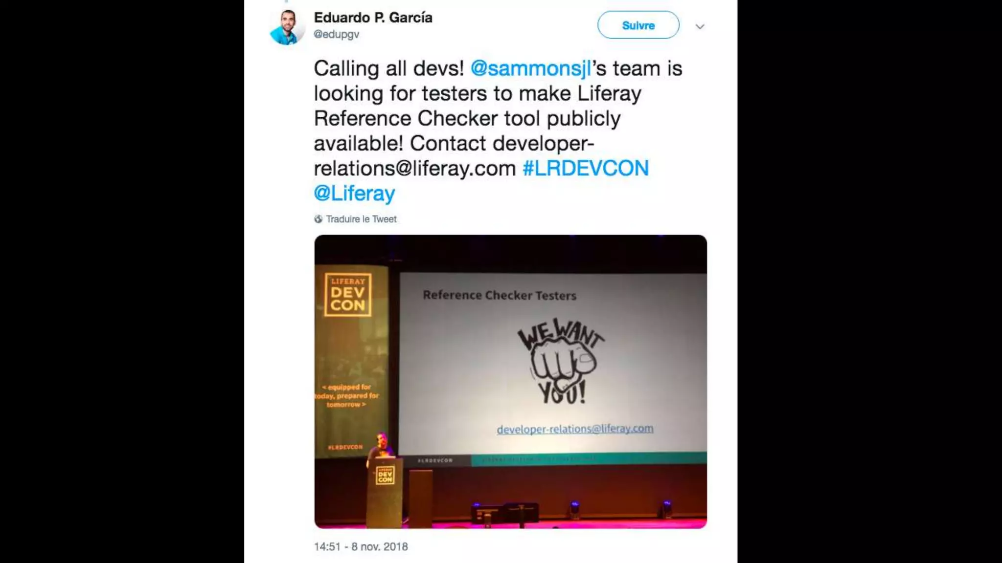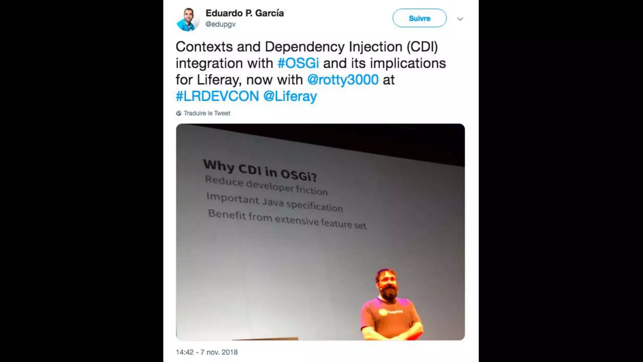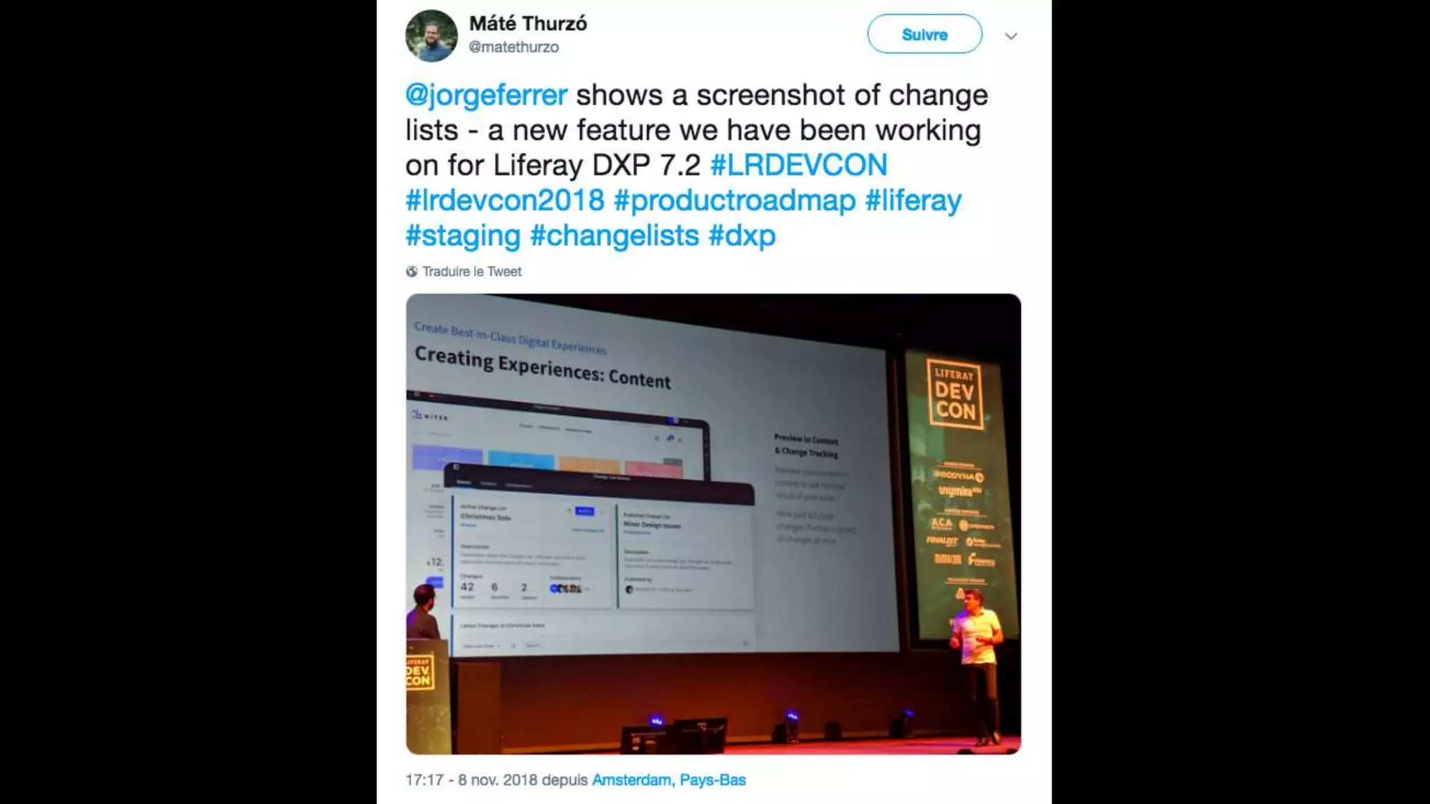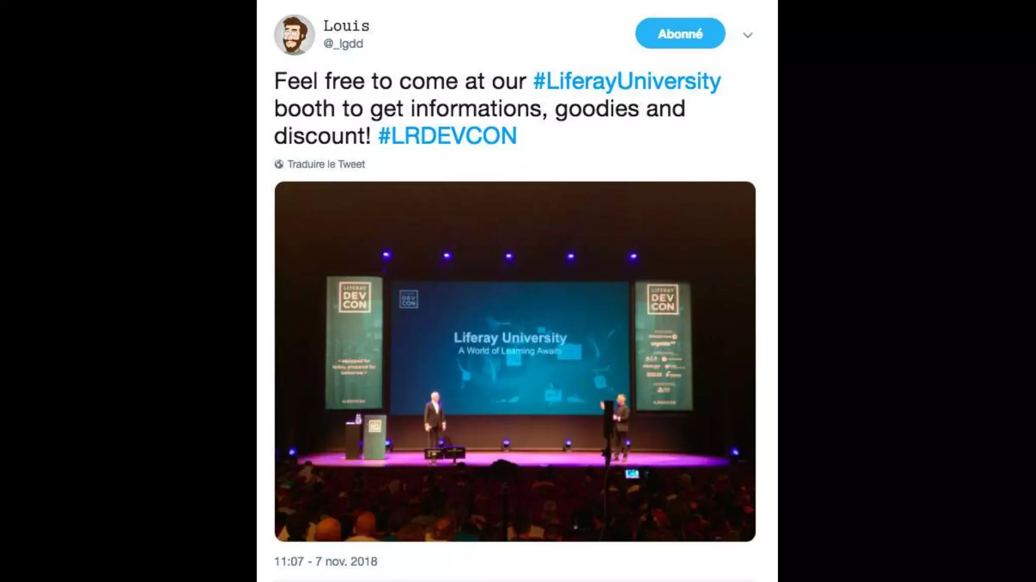 The document highlights the Liferay France User Group meetup #10 held in November 2018, detailing events from the unconference on November 6 and subsequent days. It includes links to impressions from the first day and resources for dependency visualization during the event. Additionally, it references the agenda available on Liferay's official site.