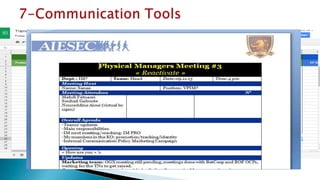 - Introductions were made to leaders from other AIESEC branches. Sessions covered AIESEC culture, the four circles theory, and skills of a leader.