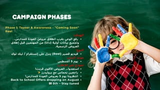 كامبين العودة للمدارس باهداف الحملات الاعلانية ، مع طرح أفكار وأهداف تتناسب مع طبيعة الشركة المتخصصة في التعليم والتدريب. تركّز الحملة على زيادة التفاعل الرقمي وتعزيز نسبة المبيعات الداخلية للمعهد
