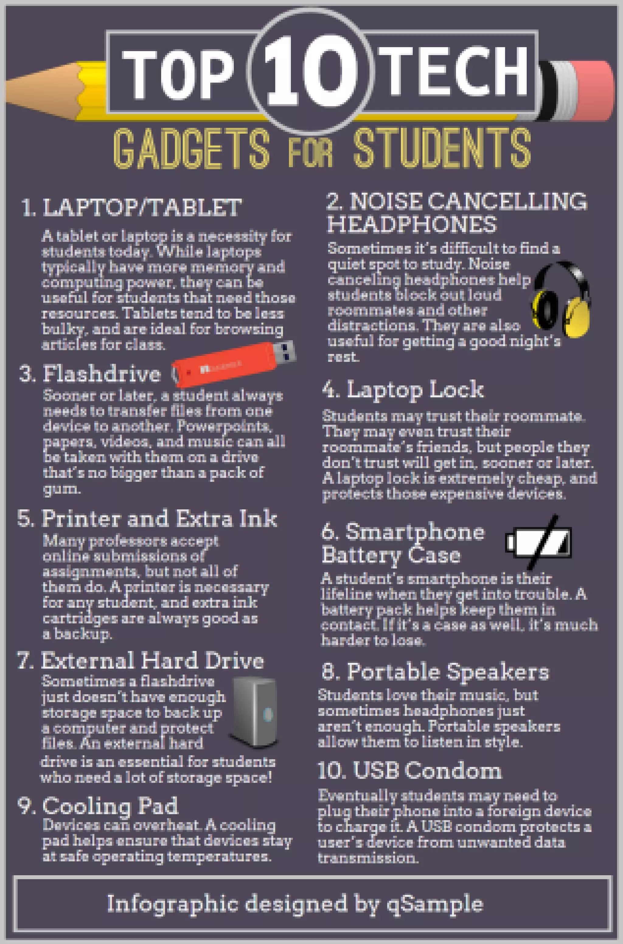 The fall semester is coming up fast! We took a look at which gadgets are essential for students! http://blog.qsample.com/articles/gadgets-for-students/
