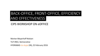 The document discusses the challenges and goals of improving efficiency in public sector e-services through better governance and user-friendly design. It highlights examples from Denmark and Estonia showing significant savings and increased usage of digital services. Emphasis is placed on collaboration, data reuse, and the importance of user experience to enhance accessibility and reduce administrative burdens.