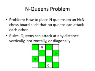 • Problem:How to place N queens on an NxN