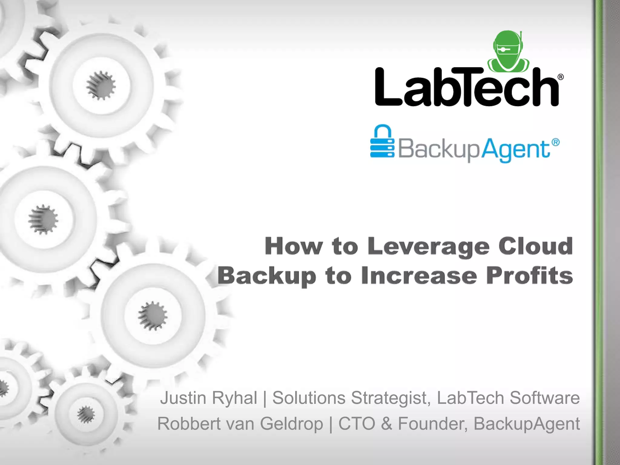 The document introduces BackupAgent, a cloud backup solution that empowers Managed Service Providers (MSPs) to resell premium services to small and medium-sized businesses (SMBs). Key features include easy deployment, robust backup capabilities, and an integration with LabTech for improved management and monitoring. BackupAgent claims to offer high profitability margins while ensuring fast, secure, and scalable backup solutions tailored to SMBs' needs.