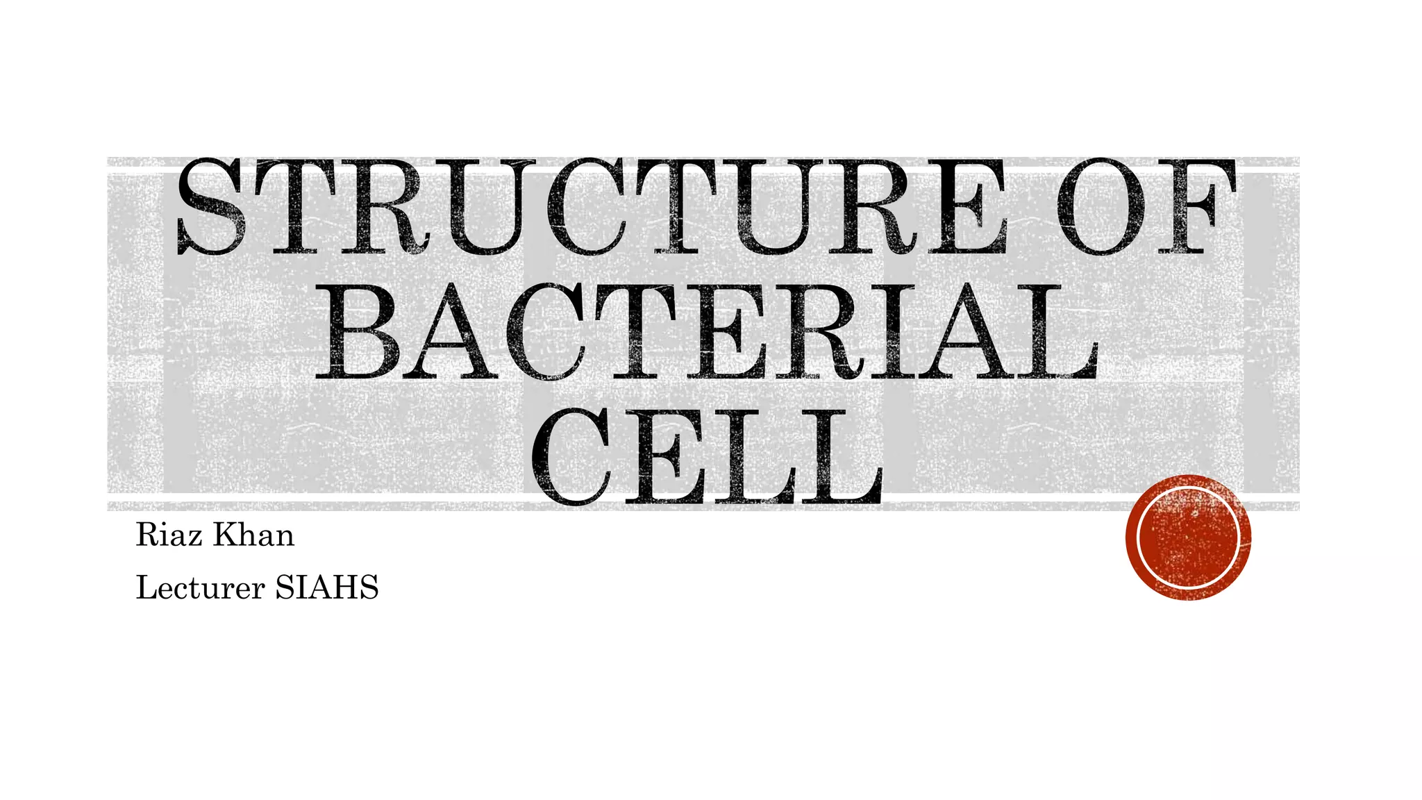 This document provides information about Riaz Khan's lecture on clinical bacteriology and bacterial cell structure. It begins by outlining the topics to be covered, including an introduction to clinical bacteriology, bacterial cell structure, and bacterial classification. The document then goes on to describe the key differences between prokaryotic and eukaryotic cells. It provides detailed information on the various components of bacterial cells, including cell walls, membranes, flagella, pili, and cytoplasmic inclusions. It also discusses bacterial shapes and classifications.