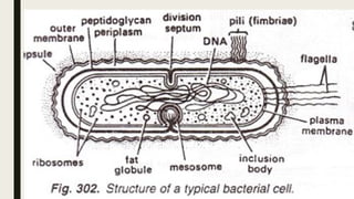 The document provides a comprehensive overview of bacterial morphology, detailing their size, shape, and arrangement, including types such as cocci, bacilli, and spirilla. It explains the cellular structure of bacteria, specifically the cell envelope, its appendages like capsules and flagella, and the cytoplasm, including ribosomes and plasmids. Additionally, it discusses the characteristics of bacterial spores, highlighting the structures that contribute to their resilience.