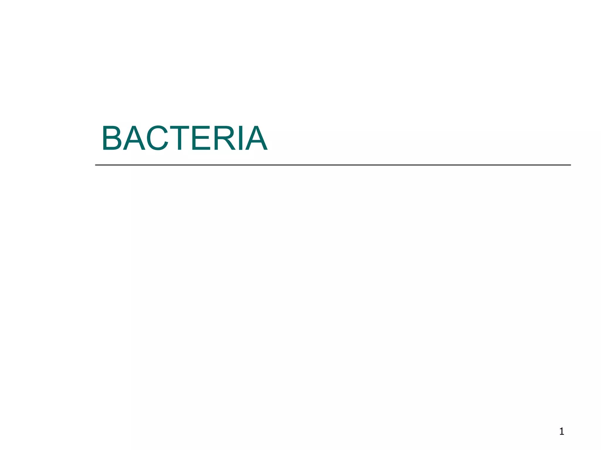 1. Bacteria come in a variety of shapes including rods, spirals, and spheres. They reproduce through binary fission and can acquire new genetic material through transformation, conjugation, and transduction.