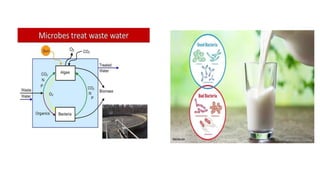 Bacteria are microscopic single-celled organisms that can thrive in diverse environments like soil, oceans, and the human gut. They reproduce through binary fission and come in various shapes such as coccus, spiral, and bacillus. Bacteria play both beneficial and harmful roles. Positively, they are important for agriculture, food production, and industry by aiding processes like fermentation and antibiotic production. However, some bacteria can also cause food spoilage, food poisoning, and diseases.