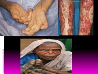LEPROSY  ITis a chronic contact communicable disease caused by Mycobacterium leprae  It spread through direct contact with infected people or their clothing or through aerosolised respiratory discharges from infected peoples