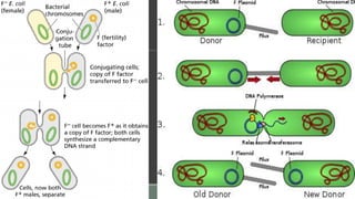 The document provides an overview of bacterial genetics, including foundational concepts like the central dogma (DNA to RNA to protein), mechanisms of gene transfer (transformation, transduction, conjugation), and the structure and function of various genetic elements such as plasmids and transposons. It discusses key historical figures in genetics and critical processes like DNA replication, transcription, and translation, highlighting the importance of mutations and gene regulation in bacterial adaptability. Additionally, it covers the implications of mobile genetic elements and their role in antibiotic resistance.