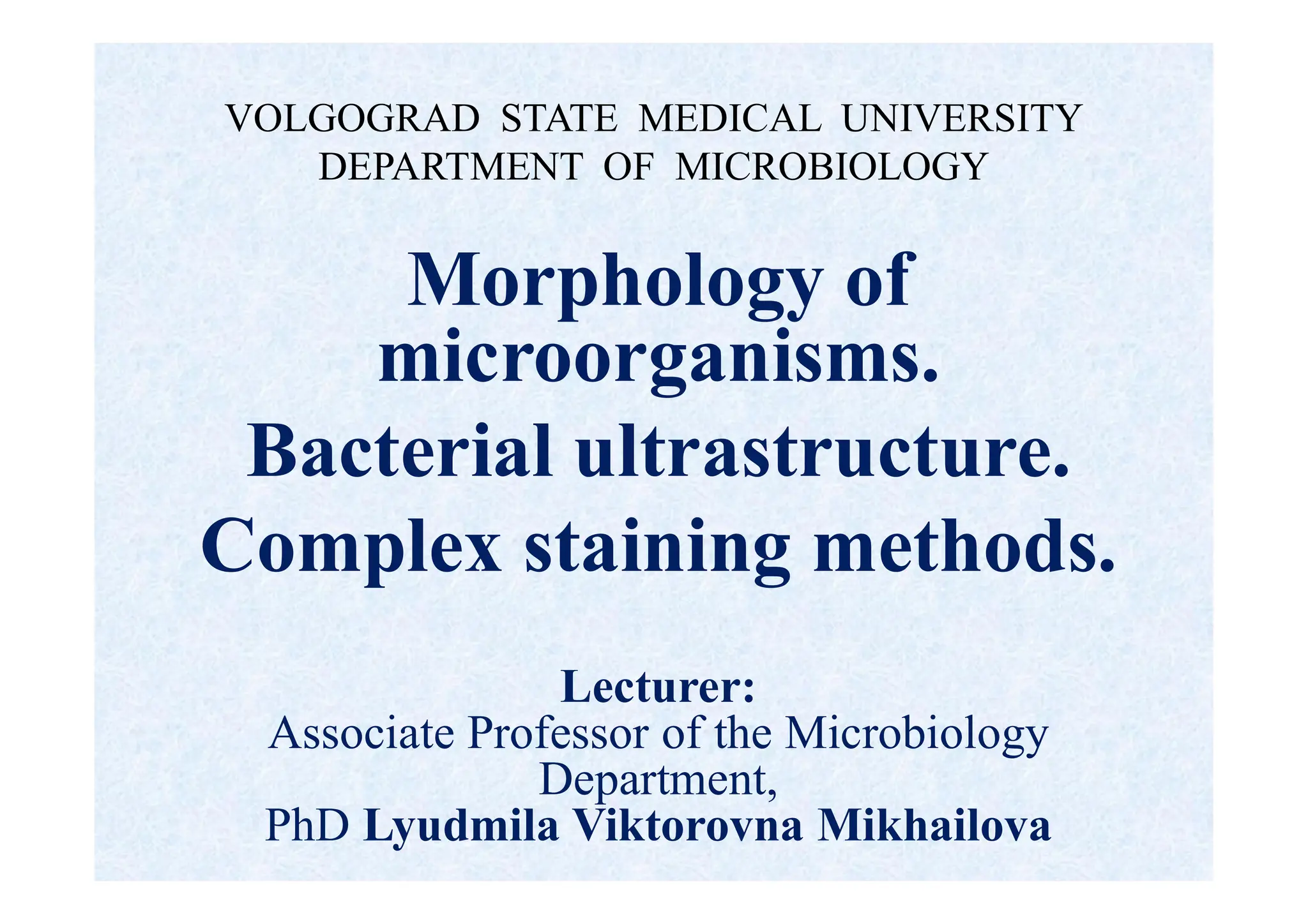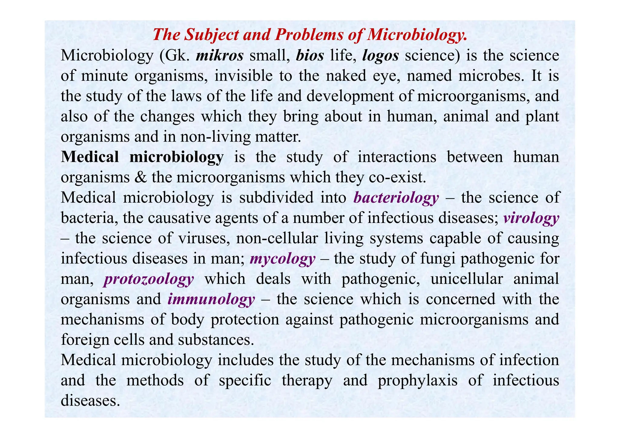 Associate Professor of the MicrThe Subject and Problems of Microbiology.