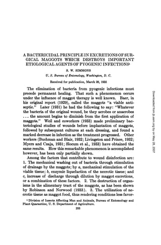 3) The bactericidal activity of maggot excretions was demonstrated against other pathogens like Clostridium welchii and Proteus vulgaris. Excretions from both sterile and non-sterile maggots exhibited bactericidal effects, though excretions from non-sterile maggots appeared more potent.