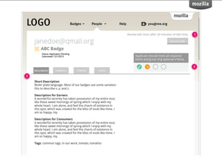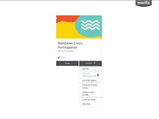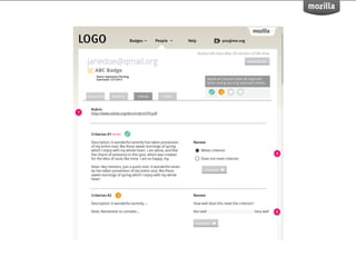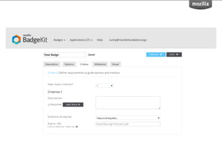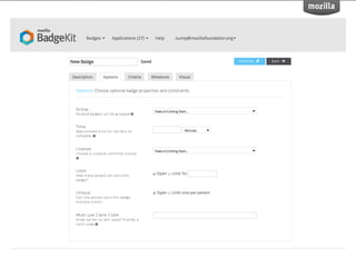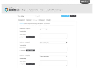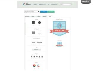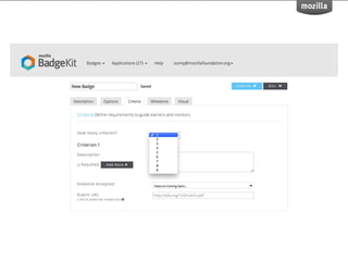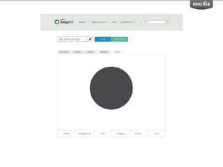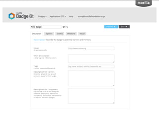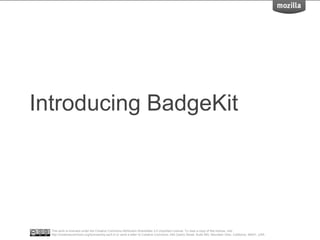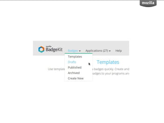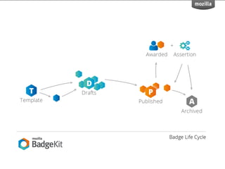 BadgeKit aims to enhance the open badging experience by providing simple, free tools for issuers, learners, and consumers. It seeks to close existing gaps in the badging process and promote growth within the open badges ecosystem. With an open-source model, BadgeKit allows collaborative improvements to benefit all users.