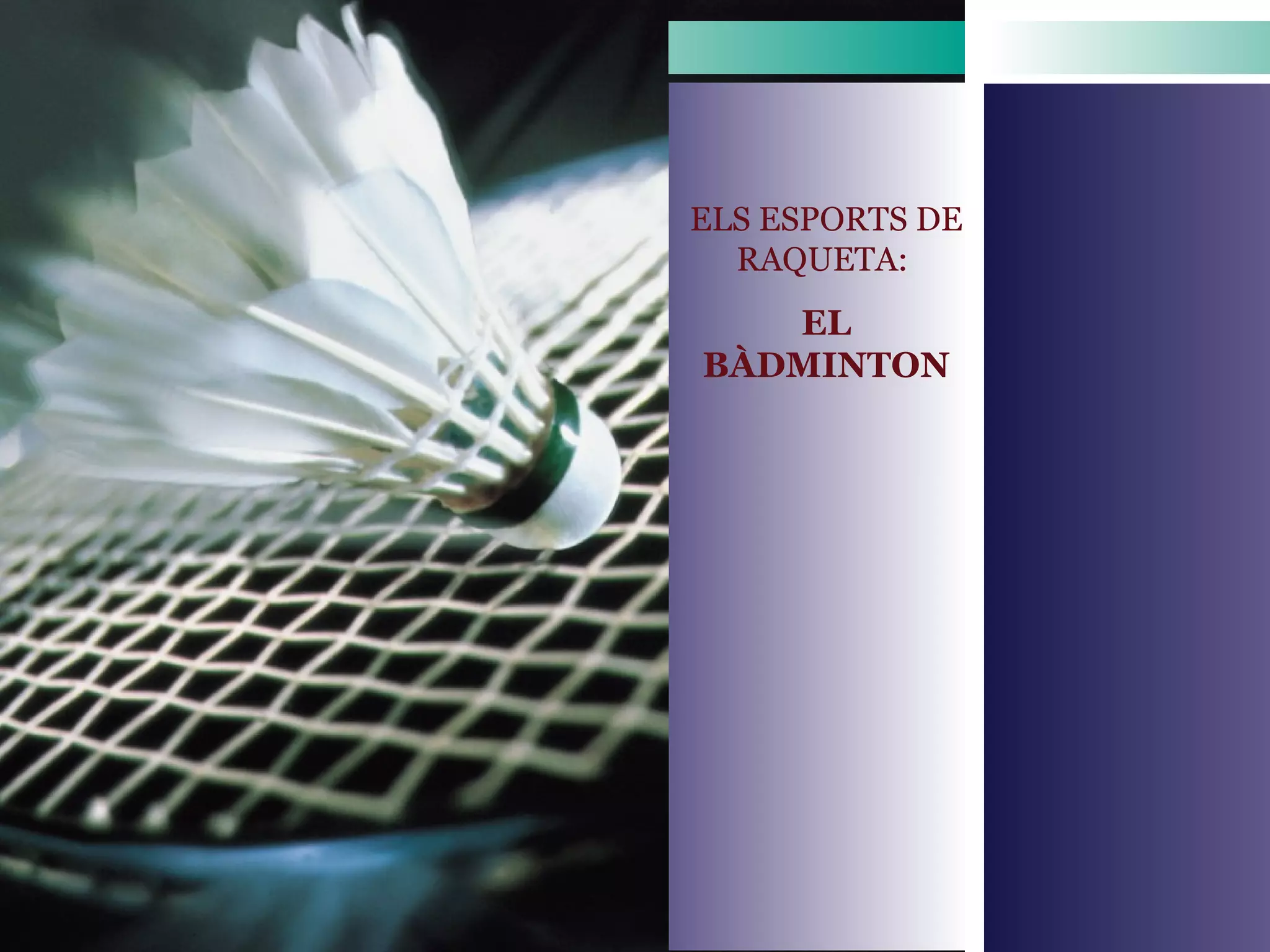 RECORD HISTÒRIC Lesprimeres regles es van publicar el 1877. El 1893 es crea la Badminton Associaton of England i el 1934 la Federació Internacional. Els antecedents del bàdminton se situen a la Xina, encara que també hi ha notícies que els inques practicaven el joc de la indiaca. Els militars anglesos van importar el joc de la poona des de l’Índia i és el precedent de l’actual bàdminton. A finals dels anys 60 s’introdueix a Espanya a través de Galícia. Des dels Jocs de Barcelona de 1992, és esport olímpic.