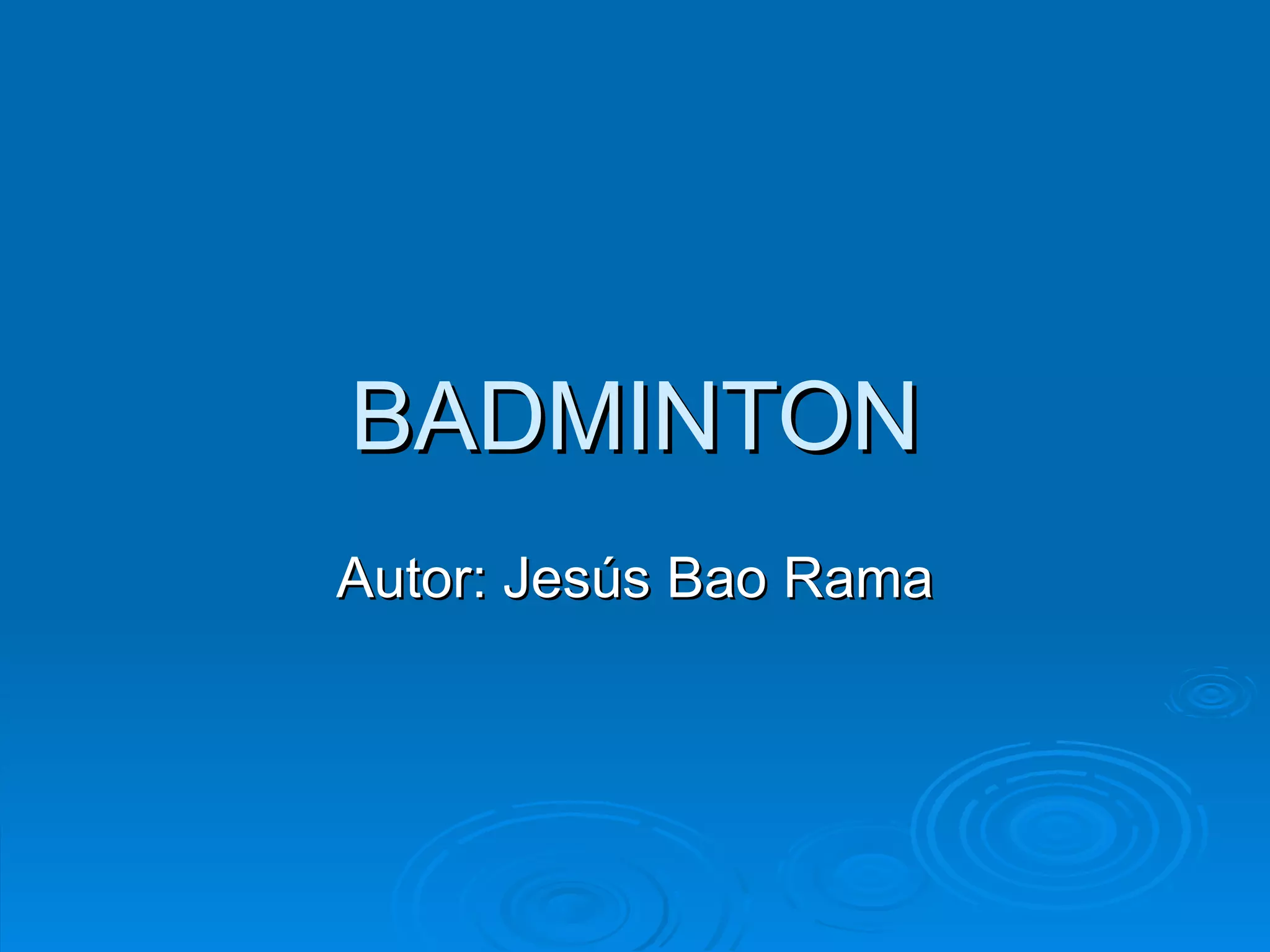 COMPETICIÓNS As competiciónsinternacionais máis importantes son: Campionatos do Mundo. Xogos Olímpicos. Torneo “All England”. “ Thomas Cup” (masculino). “ Uber Cup” (feminino). “ Sudirman Cup” (mixta).