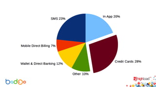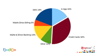 Документ посвящен системам приема платежей на платформе Badoo, охватывая инфраструктурные и операционные аспекты. Основные проблемы включают поддержку транспортировок, надежность кода и борьбу с мошенничеством. Также подчеркивается важность анализа успешности транзакций и опыт пользователей при выборе методов оплаты.