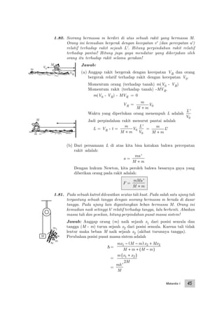 Dokumen ini membahas berbagai masalah mekanika dan dinamika, seperti tumbukan elastis dan tidak elastis, perubahan momentum, dan energi kinetik. Beberapa contoh dihitung secara matematis untuk menunjukkan hubungan antara massa, kecepatan, dan energi dalam sistem fisik. Hasil perhitungan menyimpulkan nilai akhir dari momentum dan energi dalam konteks sistem yang diberikan.