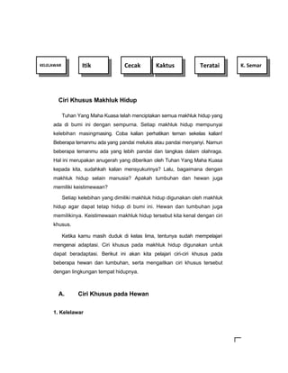 memilikinya. Keistimewaan makhluk hidup tersebut kita kenal dengan ciri