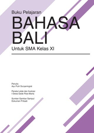 Buku ini merupakan panduan untuk mempelajari bahasa dan sastra Bali, ditujukan untuk siswa sekolah menengah pertama. Materi-materi dalam buku ini mencakup berbagai aspek pembelajaran yang sesuai dengan kurikulum 2013 serta dilengkapi dengan latihan soal. Meskipun telah ditulis berdasarkan teori dasar, buku ini masih memiliki beberapa kekurangan yang perlu diperbaiki.