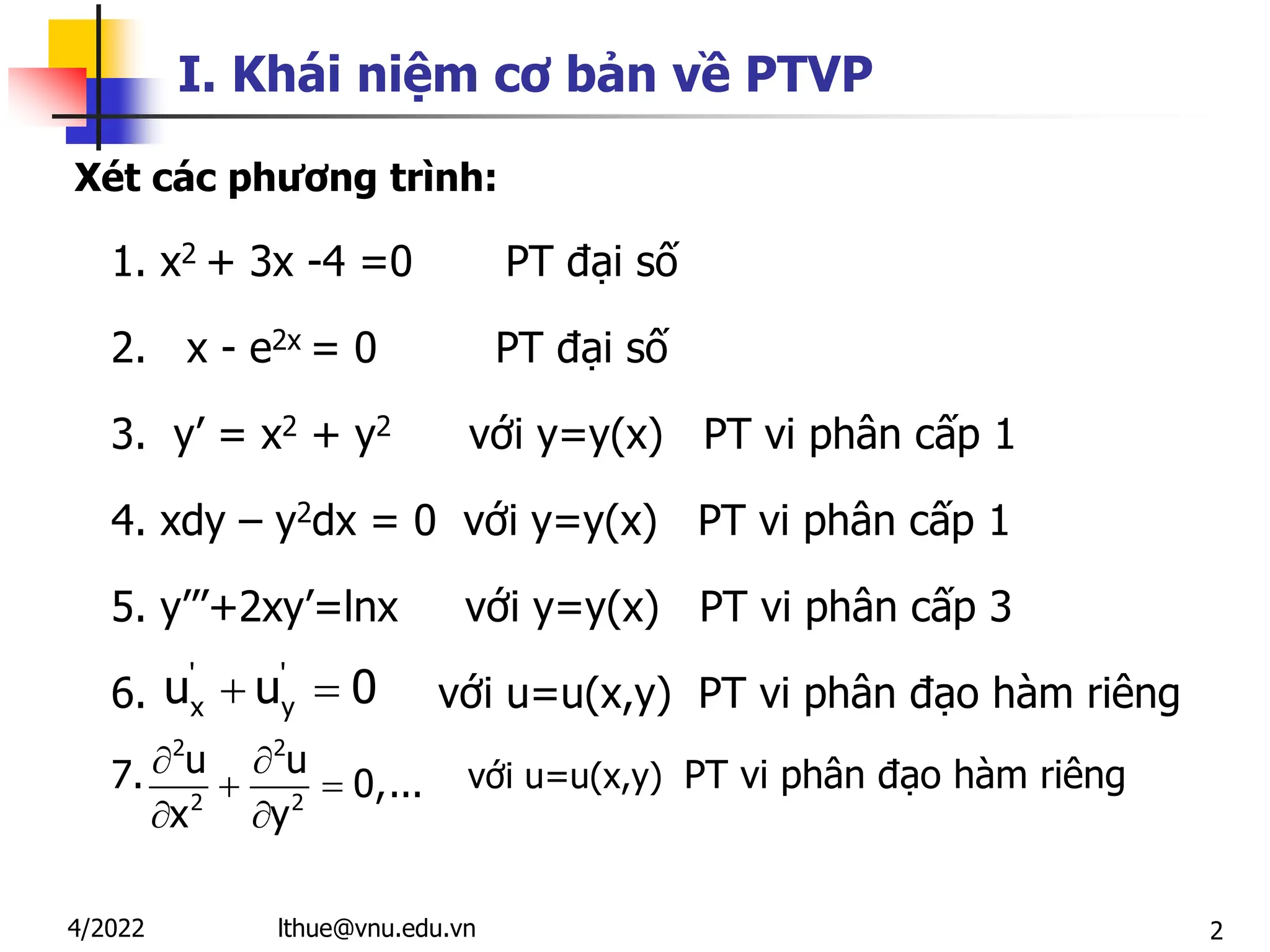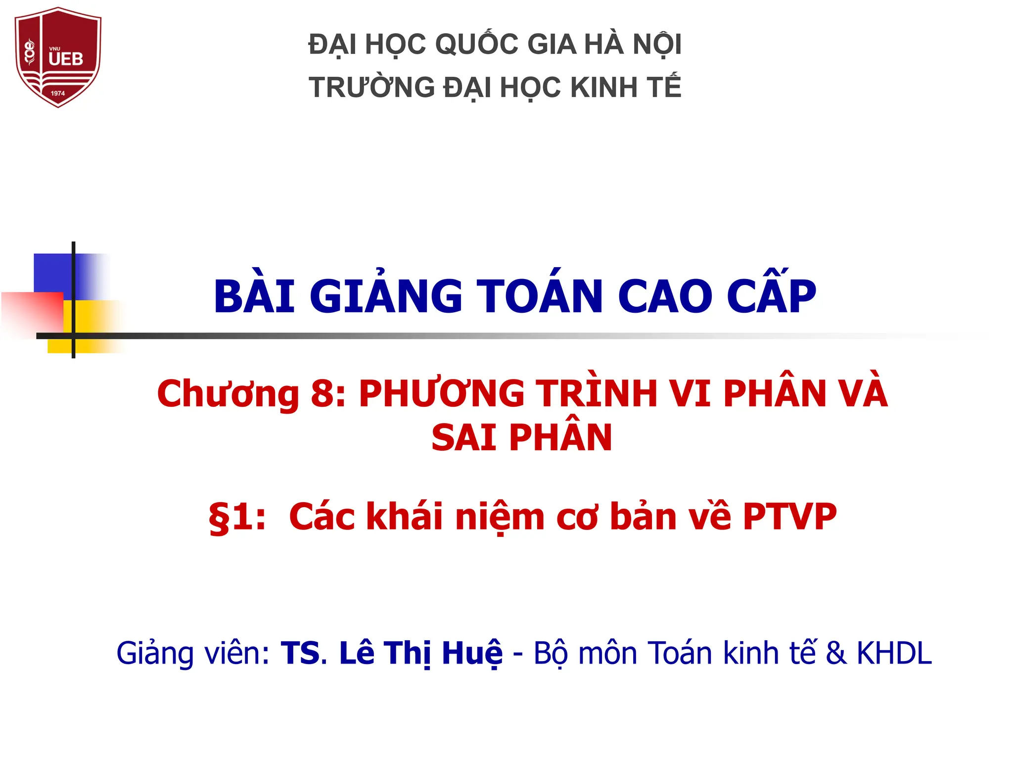 Chương 8 giới thiệu về phương trình vi phân (ptvp) với các khái niệm cơ bản, loại hình và cấp độ của ptvp. Tài liệu bao gồm phương pháp giải các loại ptvp tuyến tính cấp 1, cấp 2 và các dạng khác như ptvp Bernoulli và ptvp toàn phần. Ngoài ra, tài liệu cũng đề cập đến bài toán Cauchy và điều kiện ban đầu trong giải ptvp.
