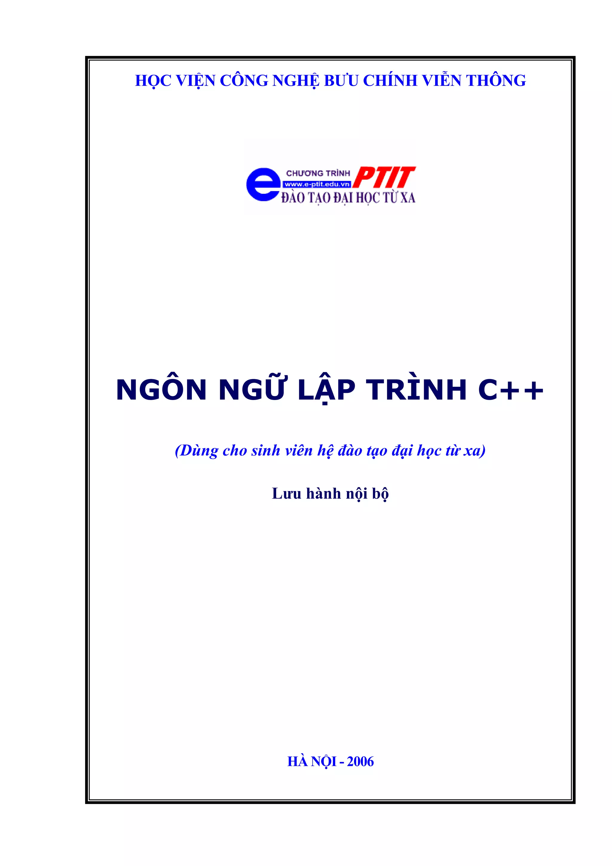 Tài liệu này giới thiệu ngôn ngữ lập trình C++ với các khía cạnh lập trình nâng cao và lập trình hướng đối tượng. Nội dung bao gồm các phương pháp lập trình khác nhau, các cấu trúc dữ liệu, thao tác tệp, và khái niệm lập trình hướng đối tượng như lớp, kế thừa và đa hình. Đây là nguồn tài liệu tham khảo cho sinh viên muốn học và phát triển kỹ năng lập trình C++.