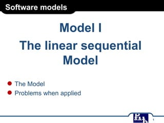 The document describes the linear sequential model, also known as the waterfall model, which outlines a systematic approach to software development that progresses through analysis, design, coding, testing, and support. It highlights the importance of software requirements analysis, design processes, code generation, testing methodologies, and maintenance, while also addressing challenges such as the difficulty of capturing all customer requirements upfront and the model's linearity not reflecting real-world project flow. Overall, the linear sequential model is presented as both a structured framework and a potentially problematic methodology for software development.