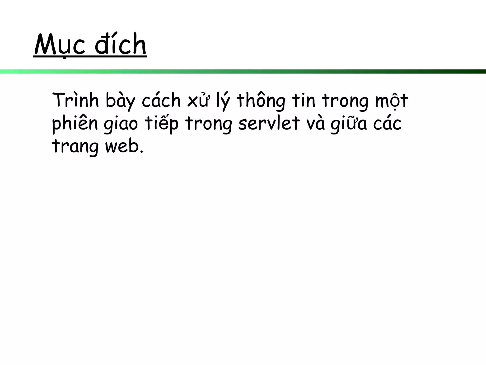 Tài liệu trình bày cách quản lý phiên và thông tin trong giao tiếp giữa client và server trong servlet, bao gồm việc sử dụng session và cookie để lưu trữ thông tin. Nó giải thích các phương thức để truy cập và thiết lập giá trị cho cookie và session, cùng với ví dụ cụ thể về cách thực hiện trong mã nguồn Java. Cuối cùng, tài liệu cũng đề cập đến các phương thức chuyển hướng và truyền tham số giữa các servlet và JSP.
