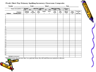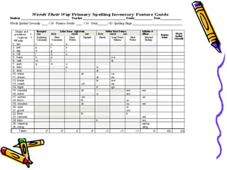 The document discusses word study, which incorporates orthography, reading, oral language, stories and writing. Word study involves hands-on activities where students examine, discriminate and make judgments about words. It is important because it involves meaningful reading and writing using new words in different contexts, rather than rote memorization. The document provides examples of how to get started with word study through spelling inventories and word sorts, including sample activities and schedules for kindergarten and primary grades.